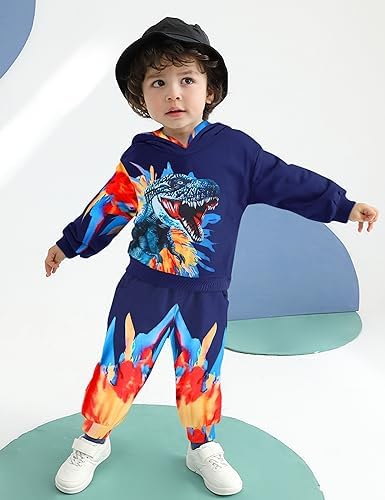BAVADER Toddler Boy Clothes 18M-6T Long Sleeve Dinosaur Hoodie Pant Sets T-Rex Toddler Boy Outfits Fall Winter Spring