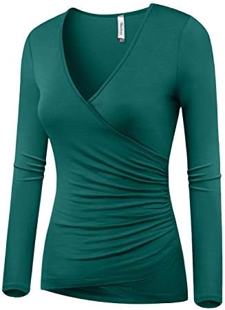 Beauhuty Women’s Top Deep V Neck Slim Fitted T-Shirt Front Surplice Wrap Short/Long Sleeve Tees