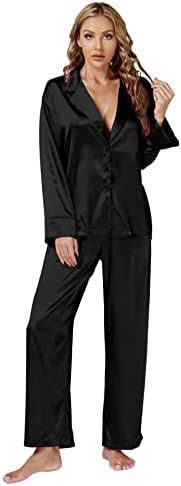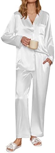 Ekouaer Satin Pajamas Set Women’s Long Sleeve Sleepwear Classic Button Down Loungewear V-Neck Silk Pjs with Pockets