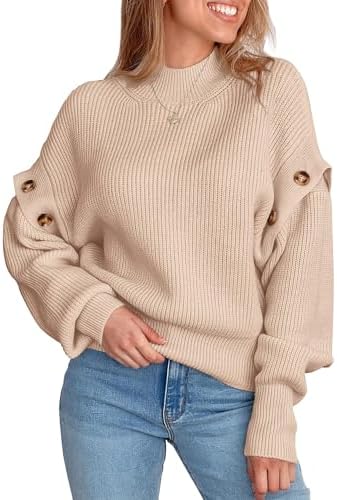 Dokotoo Womens 2023 Winter Fall Solid Turtleneck High Neck Balloon Long Sleeve Sweaters Pullover Outerwear
