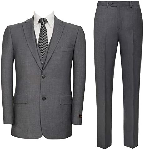 Holivyer Men’s 3 Piece Slim Fit Suit Set, Two Button Blazer Solid Jacket Vest Pants Wedding Business Suit