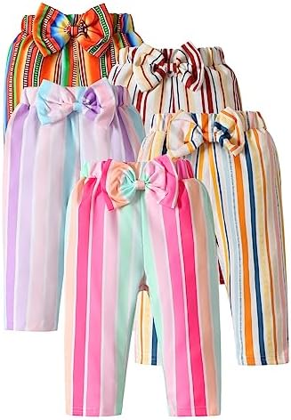U·nikaka Baby Girls Pants Sets 5-Pack Summer Color Stripes Long Pants for 0-5 Years Newborn Infant and Toddler Baby Girls