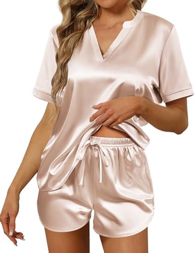 Silky satin pajamas for women.Ultra soft and cozy two piece set for sleeping,lounging and casual wear