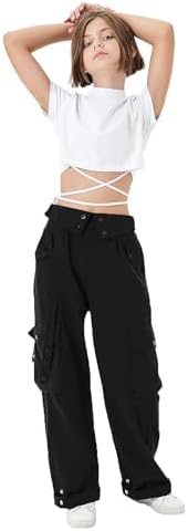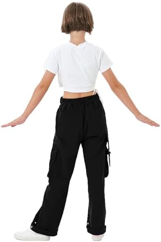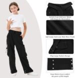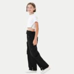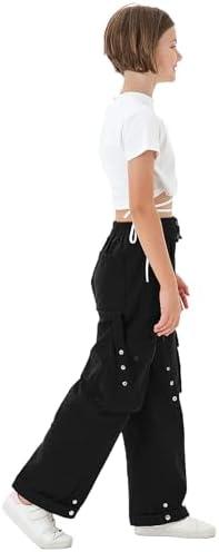 Girls Wide Leg Loose Cargo Trousers with Pockets