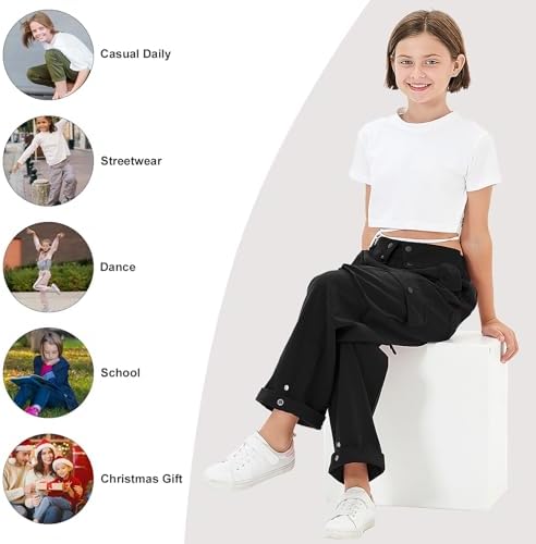 5 Colors Available for Girls Wide Leg Cargo Pants