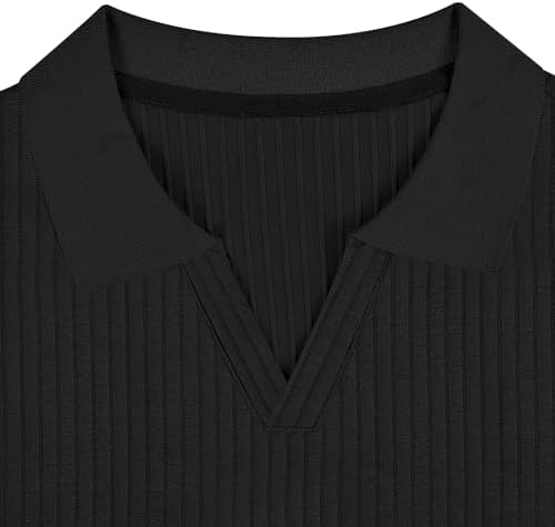 Gnvviwl Men’s Muscle V Neck Polo Shirts Slim Fit Solid Short Sleeve Cotton Golf T-Shirts Ribbed Knit Soft Tees