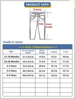 This cute and classic jean will make your children the cutest ones. The sizes provided below are just a guide. Please consider your actual needs and choose the correct size. Thank you for your attention, and have fun shopping!
