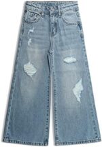 Kids Girls’ Casual Wide Leg Baggy Ripped Jeans Cool Loose Fit Distressed Denim Pants Size 5-14 Years