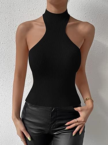 SHENHE Women’s Ribbed Knit Cut Out Halter Sleeveless Slim Fit Solid Tank Top