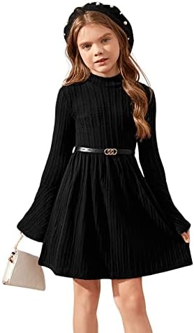 SOLY HUX Girl’s Contrast Mesh Long Sleeve Mock Neck High Waist Flared A Line Dress