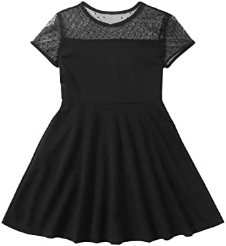 SOLY HUX Girl’s Contrast Mesh Short Sleeve High Waist Flared A Line Short Dress