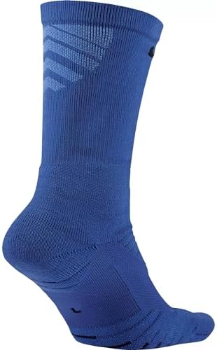 The Nike VPR Crew socks are perfect for football practices and games. With thicker cushioning where you need it the most, your feet will feel comfortable during intense plays and tackles. Sold as a one-pair pack. Crew-cut style sits at the calf. Self-adjusting welt cuff. Ribbed cuff. Elastic arch support. Deep heel pocket. Y-stitch heel. Thicker cushioning around the forefoot. 58 polyester, 31 nylon, 6 cotton, 5 spandex Machine wash cold, tumble dry low. Imported.