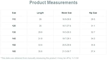 110: Length: 26″, Waist Size: 16.9-26.8″, Hip Size: 29.5″120: Length: 28″, Waist Size: 18.1-27.6″, Hip Size: 31.1″130: Length: 29.9″, Waist Size: 19.3-28.3″, Hip Size: 32.7″140: Length: 31.9″, Waist Size: 19.7-29.1″, Hip Size: 34.3″150: Length: 33.9″, Waist Size: 20.5-29.9″, Hip Size: 35.8″160: Length: 35.8″, Waist Size: 21.3-30.7″, Hip Size: 37.4″