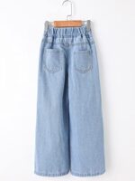 Girl's Butterfly Print Elastic Waist Wide Leg Ripped Jeans Denim PantsGirl's Butterfly Print Elastic Waist Wide Leg Ripped Jeans Denim Pants