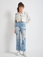 Home Jeans Jeans for Girls WDIRARA Girl’s Graphic Butterfly Print Ripped Jeans Straight Leg Distressed Jean Pants
