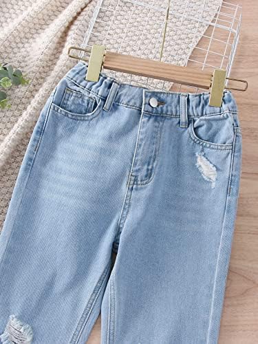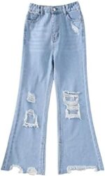 winying Kids Girls Youth Casual Jeans Bell Bottom Denim Pants Ripped High Waist Retro Wide Leg Flare Pants