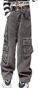 Kids Girls’ Casual Wide Leg Baggy Ripped Jeans Cool Loose Fit Distressed Denim Pants Size 5-14 Years